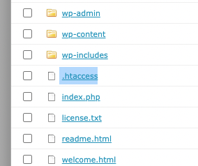 - FTP(FileZillaなど)を使い、ルート直下の「.htaccess」のファイル名を一時リネーム(「.htaccess_」など何でも)します。